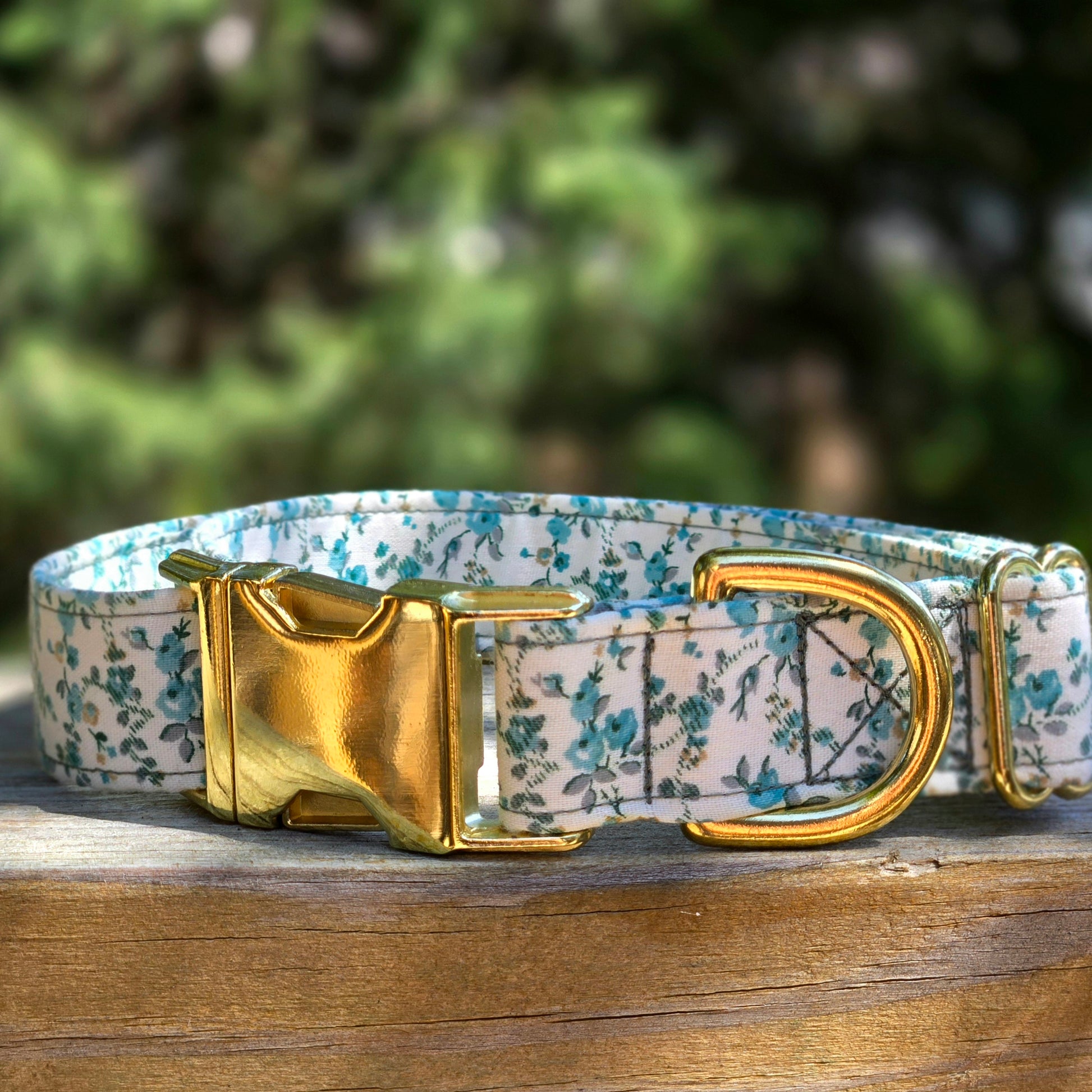 Petite Teal Floral Dog Collar