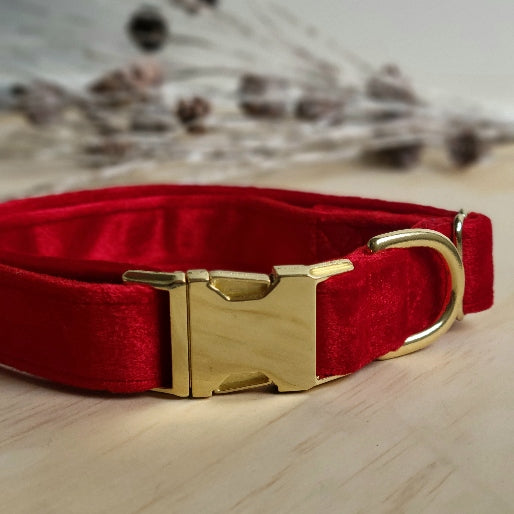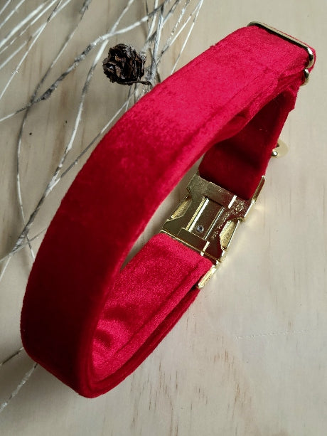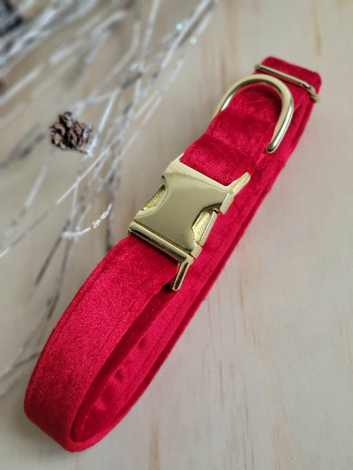 Oh so soft and luxurious bright, holiday red velvet dog collar. Perfect for the holidays, or year-round-- they are tough and durable.