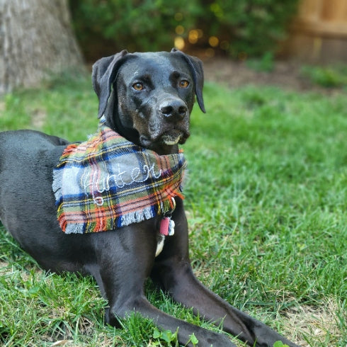 From a young age I was always creating and crafting. I loved making handmade gifts for friends and family. Like so many others, March 2020 I found myself at a crossroad. I worked in the event industry -- and we all know how that went. Days before losing my job, we adopted a sweet little mixed mutt with the longest legs; it was love at first sight as he came bounding towards us all legs and floppy ears. I had plenty of dark days ahead. Lots of unknowns. And if I'm being honest, I lost a lot of my self and my identity. Meanwhile, in a truly who-rescued-who situation, was our sweet little rescue, Hunter. His silliness and sweetness kept me going. Slowly I felt the pieces of my heart mending back together. For my husband's birthday that year I wanted to make just a little something for him-- an Iowa Hawkeye bandana for Hunter to wear. (A true token of love when this lady is a badger through and through).By Christmas I decided to dive headfirst into the idea of Creating Joy -- since I found so much joy through Hunter, and creating was the only time where I felt like I was the most myself. And so, The Plaid Badger was born.