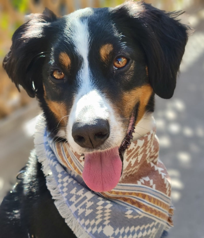 Call him our shop dog, our mascot, or the boss. This sweet little pup is the inspiration and dog behind the brand. Hunter is a 5-6 year old rescue. Don't let his looks fool you, he's half weimaraner, about a quarter aussie, some hunting dog, and a bunch of other breeds-- but not a drop of lab!