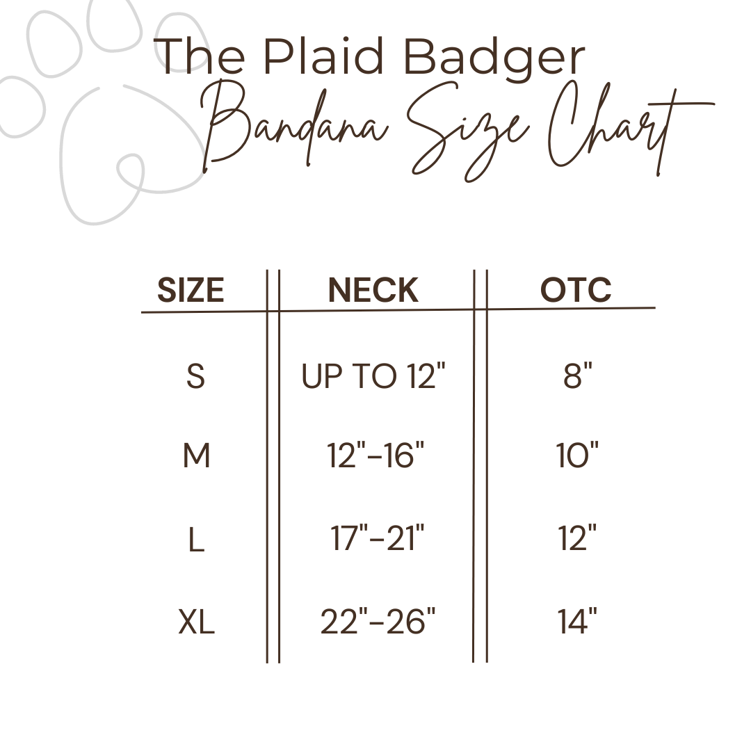 *Bandanas should fit loose. If your dog is in between sizing, it is best to size up.