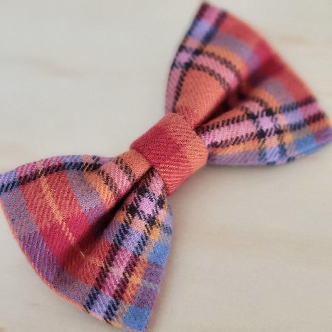- Easy to wear over the collar design. Simply thread your pet's collar through the elastics on the backside of the bow tie and adjust as needed