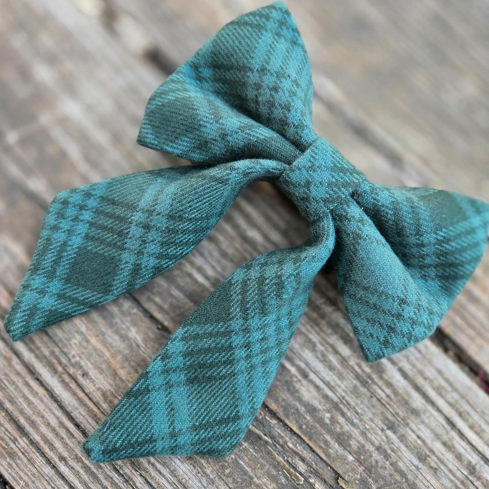 A muted green with just a hint of blue plaid dog collar. Made with soft and snuggly cotton flannel.