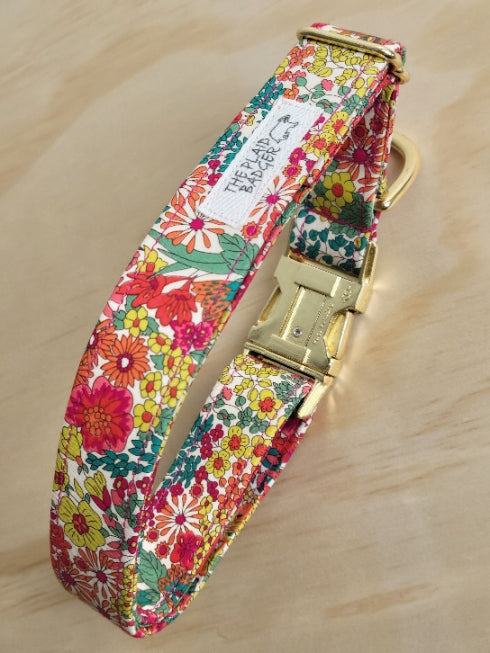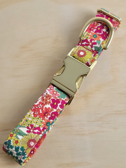 With lovely pops of bright fuchsia, orange, yellow, green, and more, this gorgeous multi-color collar is made from high-end, satiny soft Liberty of London floral fabric. It features a pretty vintage-looking floral pattern that's perfect for spring, summer, or everyday!