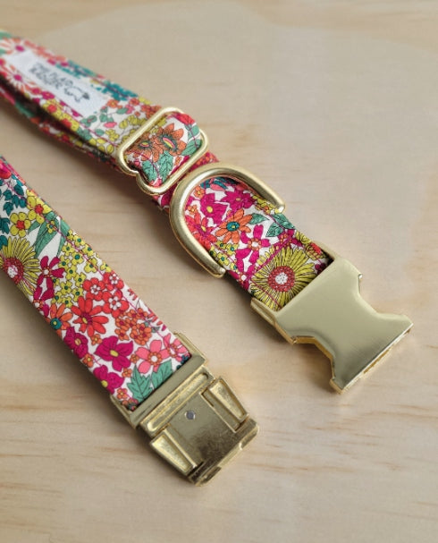 Just added for spring! Our gorgeous, Liberty Bright Floral Dog Collar paired with our oh so soft and luxurious hot pink velvet. Perfect for the holidays, or year-round-- they are tough and durable.