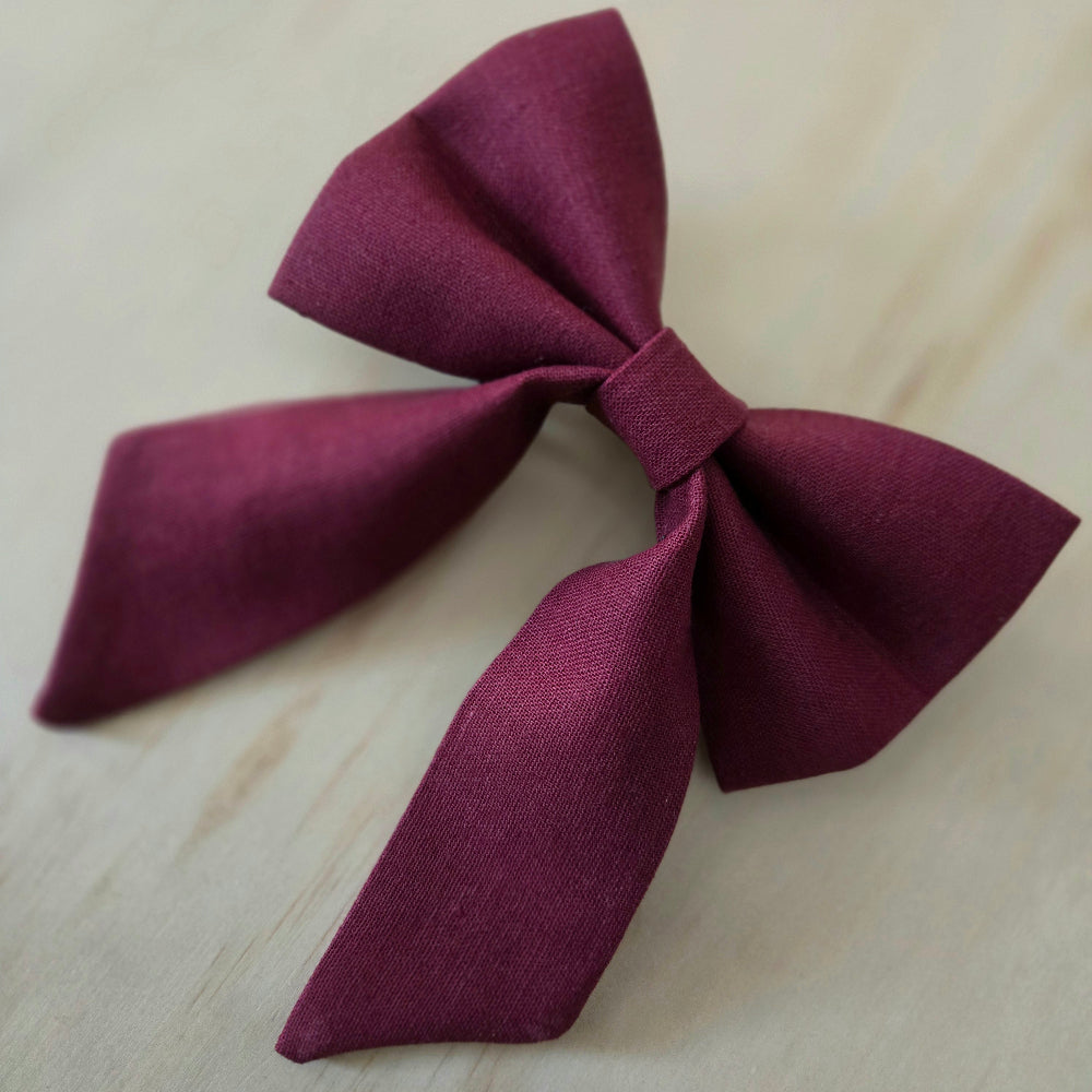 Because solid basics don't have to be boring! Merlot fancy bow in a gorgeous cotton linen blend. This bow looks great with a number of our collars!
