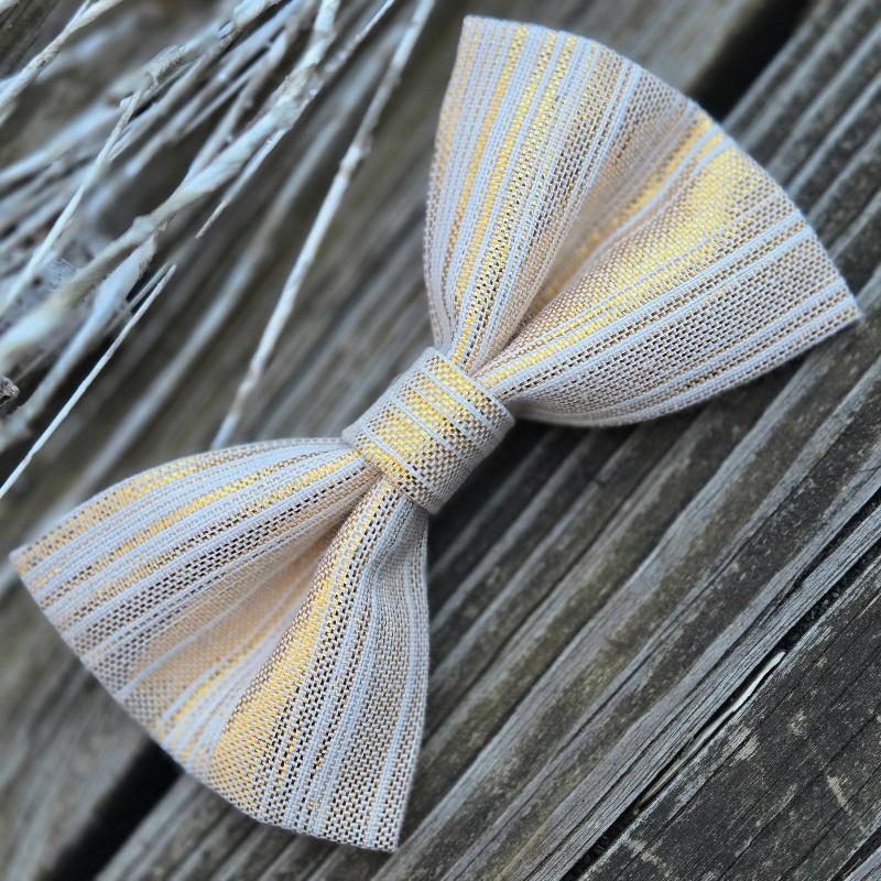 It's the holiday season! Dress them up in this metallic gold thread and white cotton bow tie! Simply thread your dog's collar through the elastics on the backside of the bow and they're ready to go.