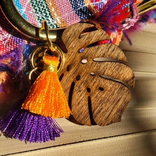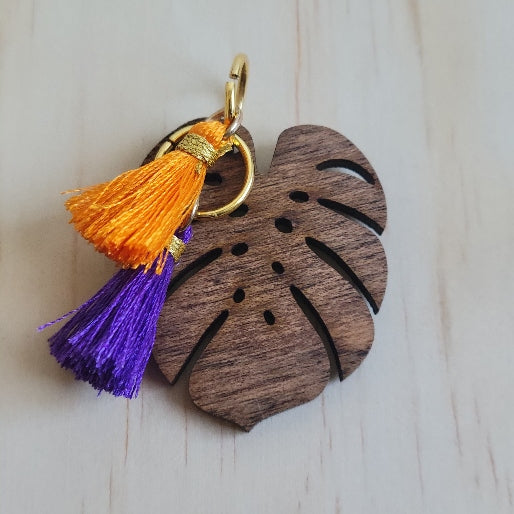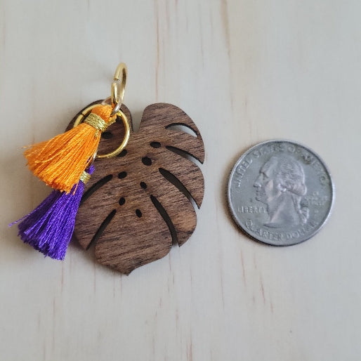 Add a little bling to your pet's collar with our adorable, monstera leaf trinket. Each trinket includes a wood monstera leaf (approximately 1.5" tall) and two multi-color tassels. Comes with gold finish jump ring.
