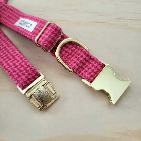 Made with soft, medium weight cotton flannel in a cute pink and red houndstooth pattern.