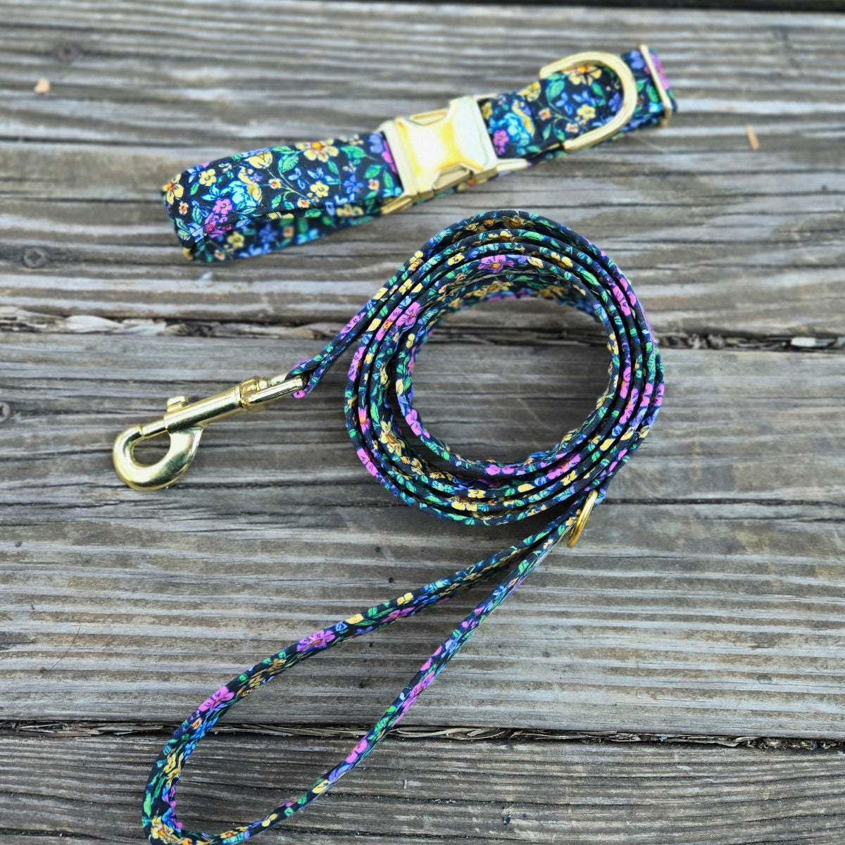 This set includes the collar, leash, and waste bag holder (not pictured), with your choice of finish.