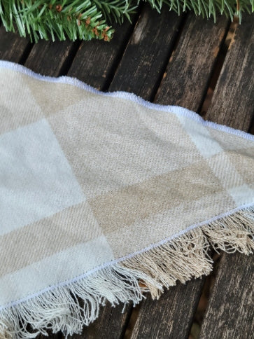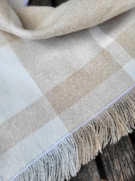 One of our best sellers! A soft, seasonal favorite! Sugar Cookie features a large plaid pattern in the prettiest, creamiest shades of oatmeal and ivory.