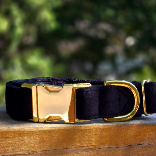 Oh so soft and luxurious black velvet dog collar. Perfect for the holidays, or year-round-- they are tough and durable.