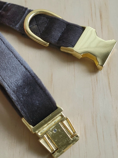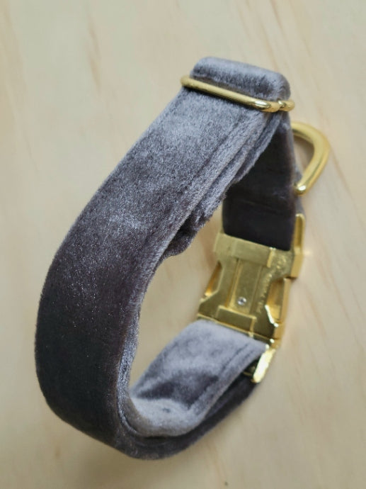 Oh so soft and luxurious charcoal gray velvet dog collar. Perfect for the holidays, or year-round-- they are tough and durable.