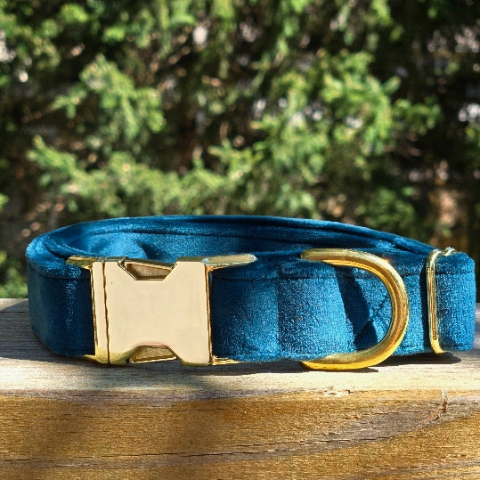 Oh so soft and luxurious teal velvet dog collar. Perfect for the holidays, or year-round-- they are tough and durable.