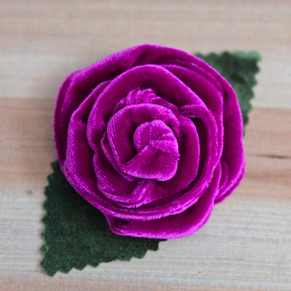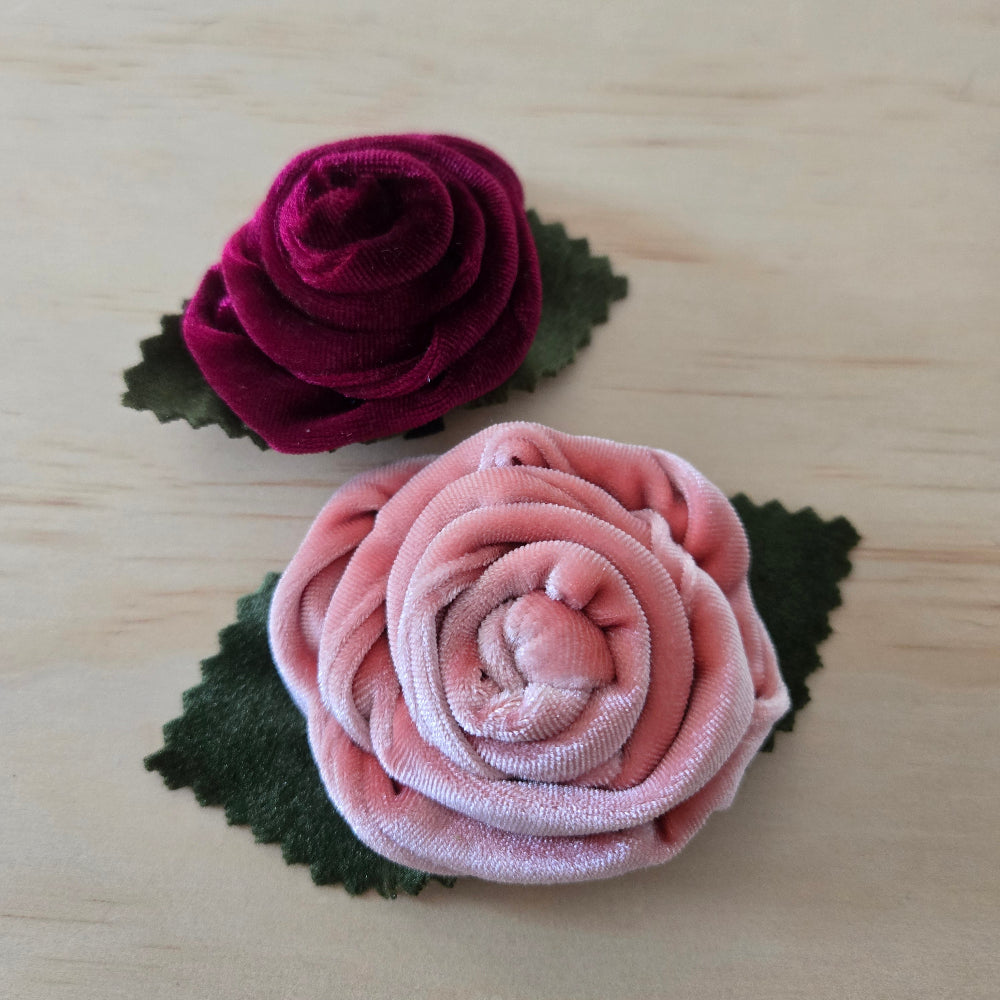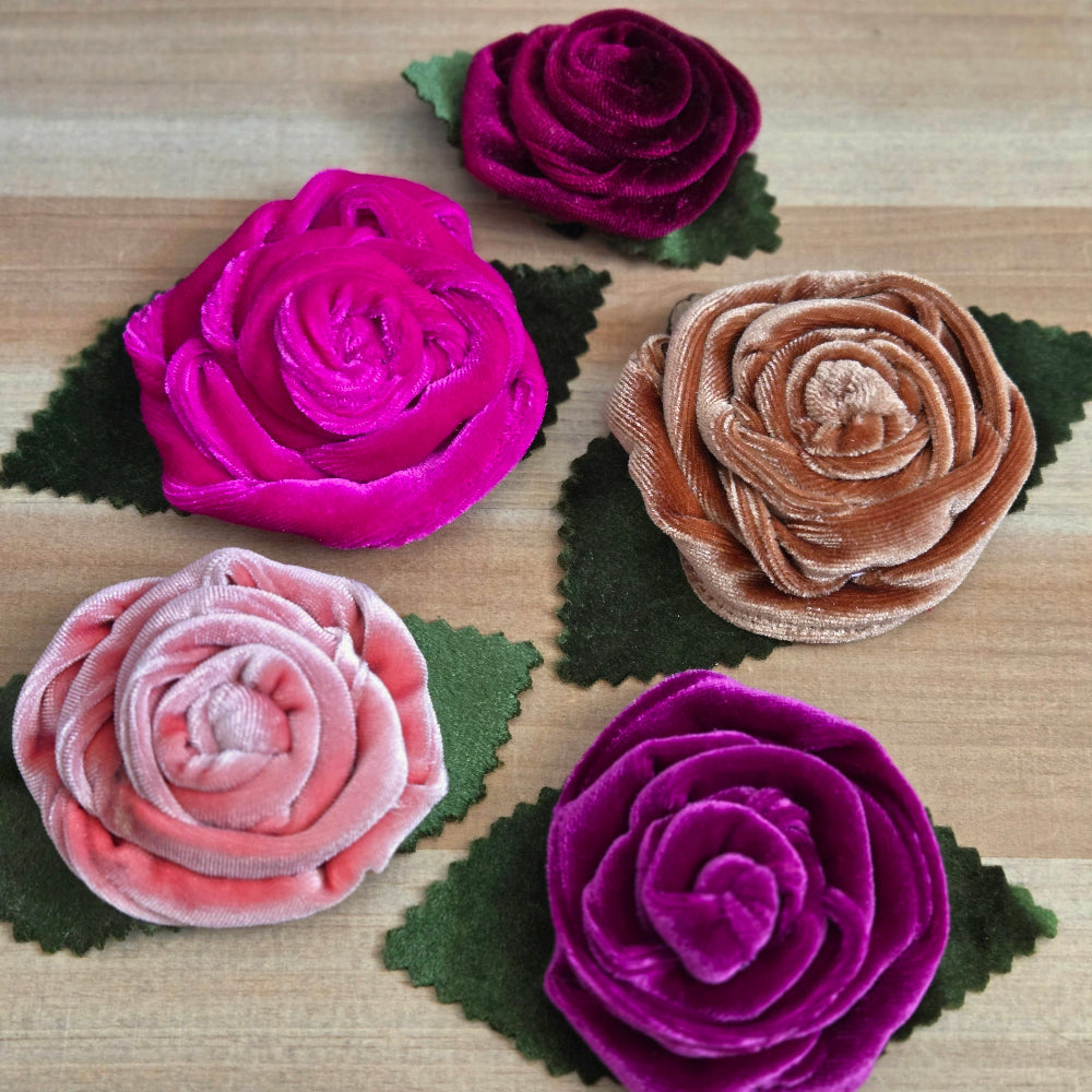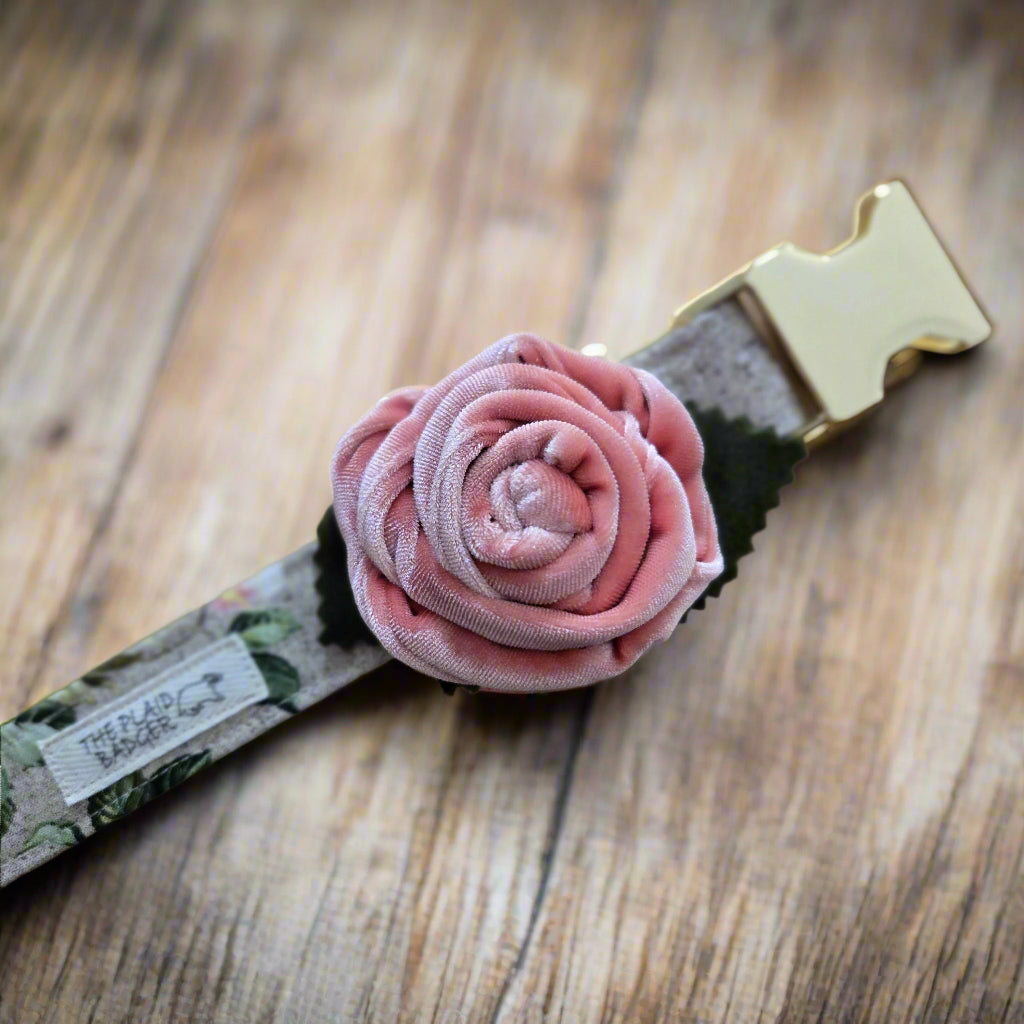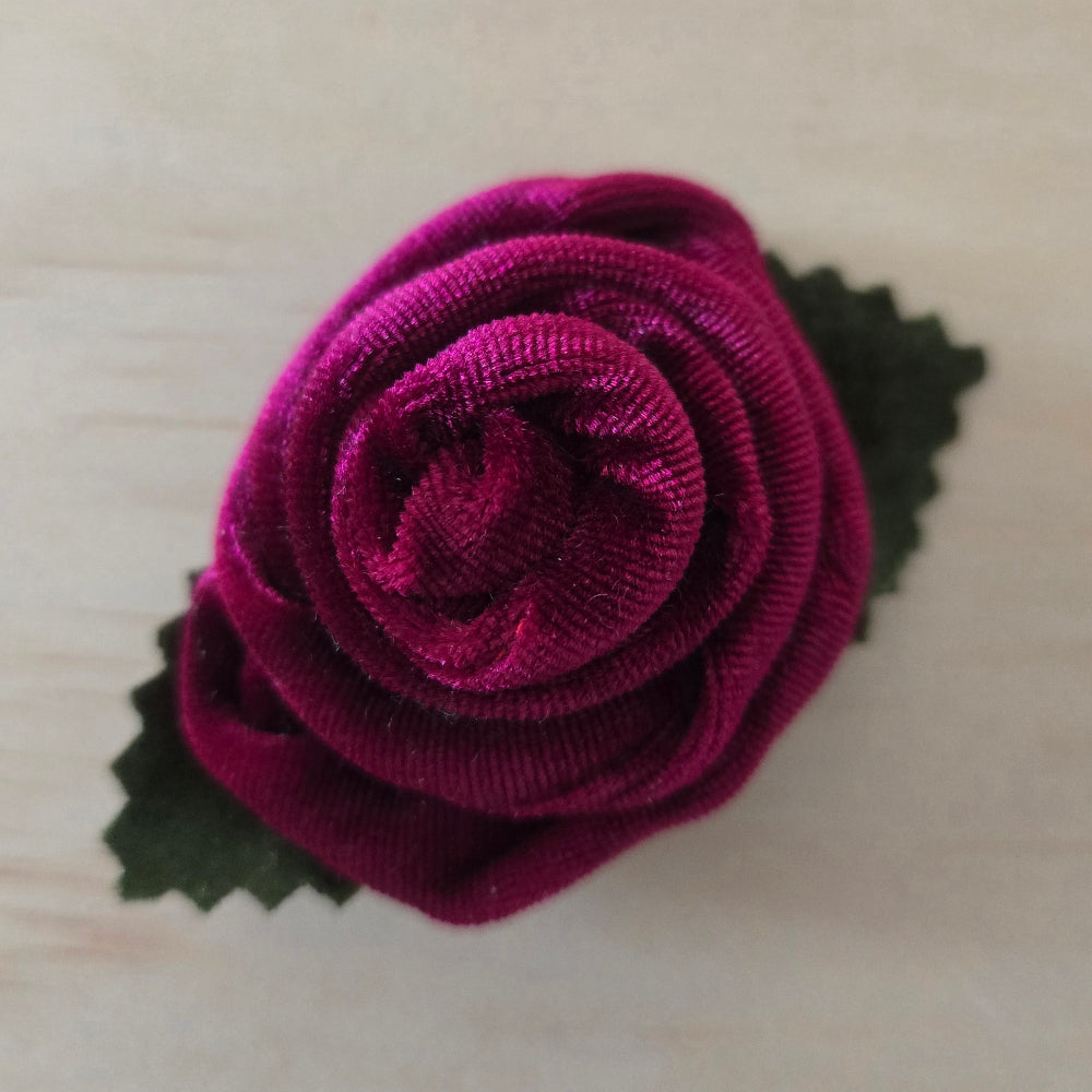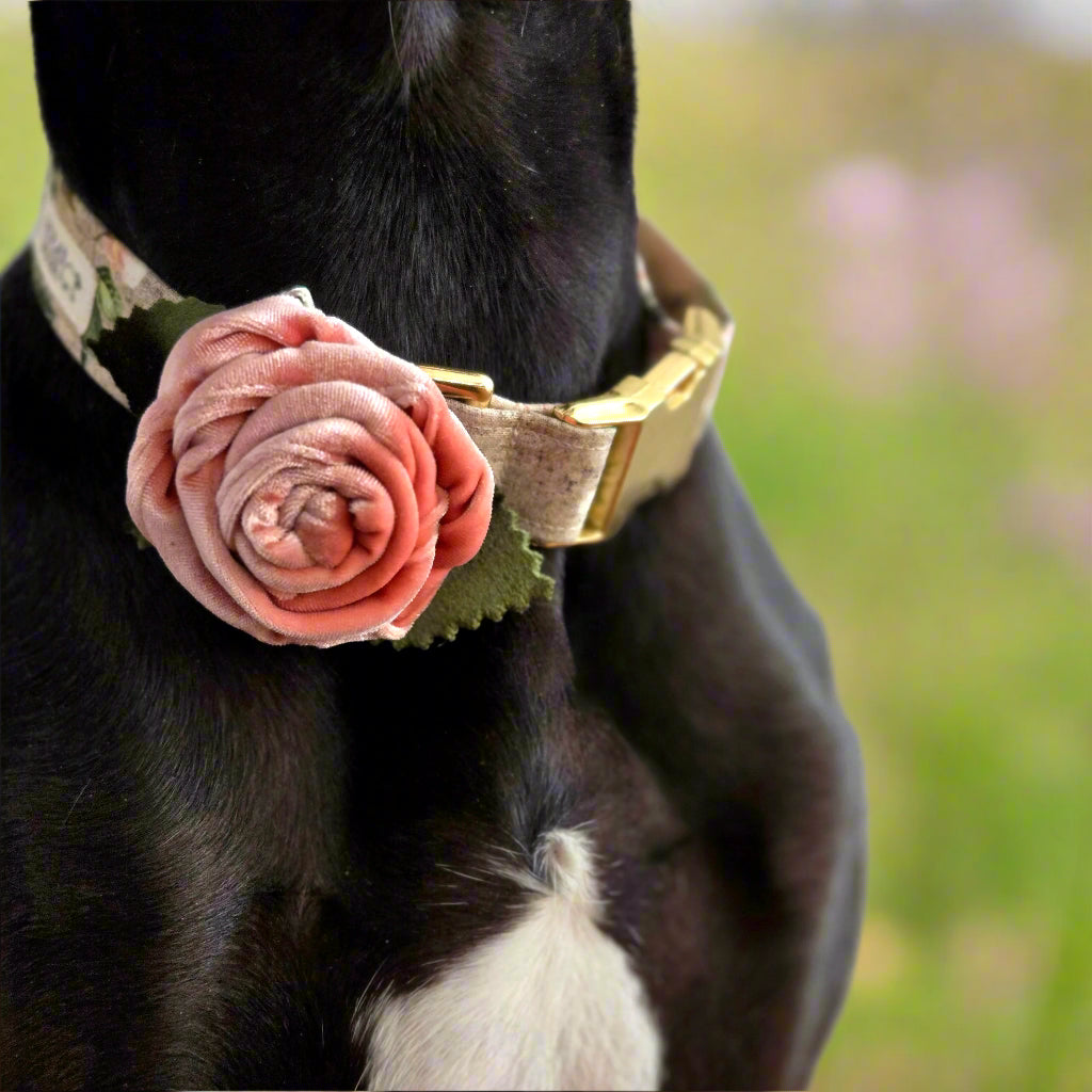 Add a little dazzle to your pet's collar with these beautiful, velvet roses. Made exquisitely by hand, in your choice of burgundy, peach, hot pink, copper, and sangria.